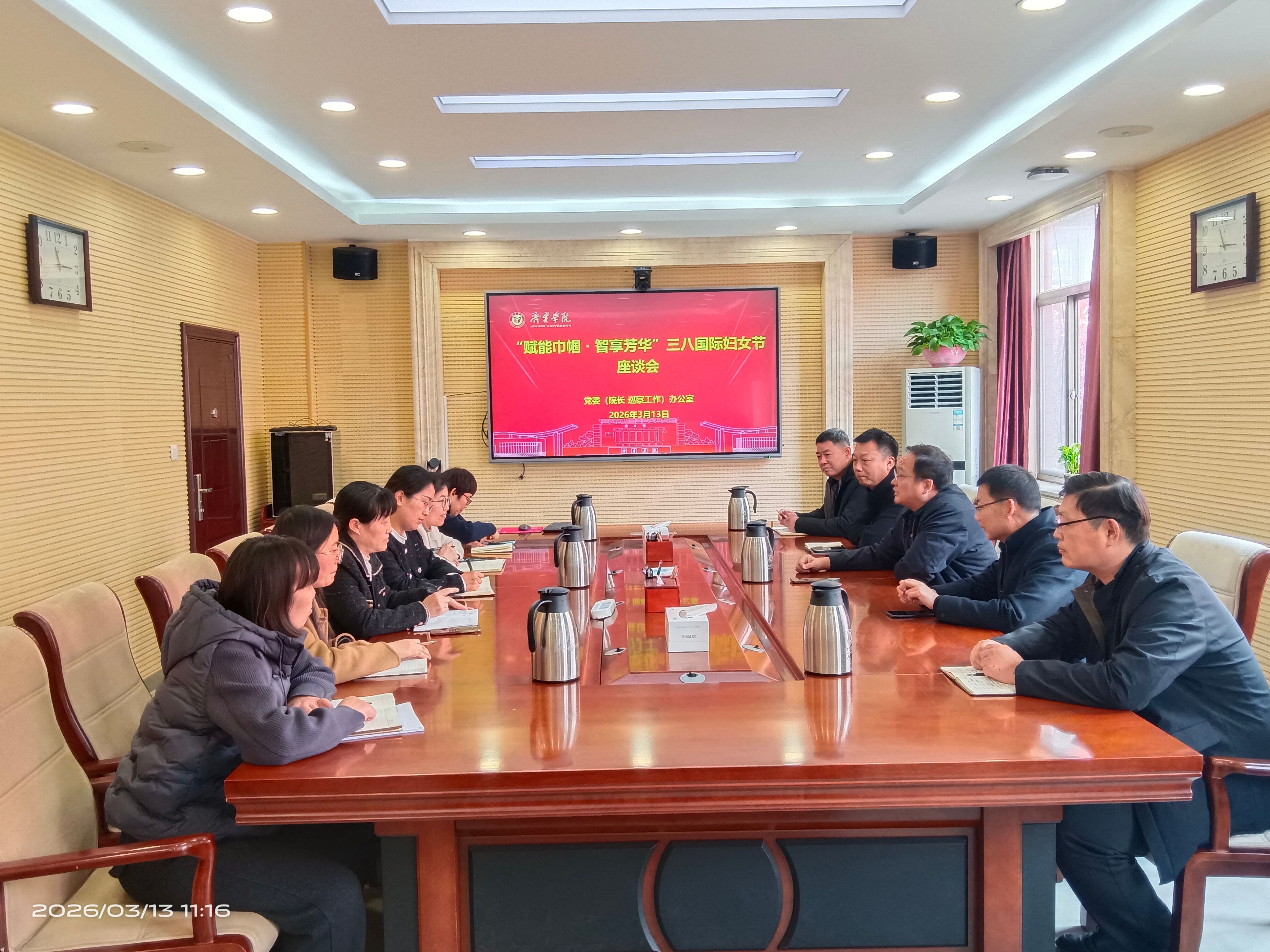 3月13日上午,党委办公室(院长办公室 巡察工作办公室)在行政楼A316会议室举办了“赋能巾帼 智享芳华‘三八’”国际妇女节座谈会。办公室班子成员、全体女教职工齐聚一堂,共叙情谊、共话发展。