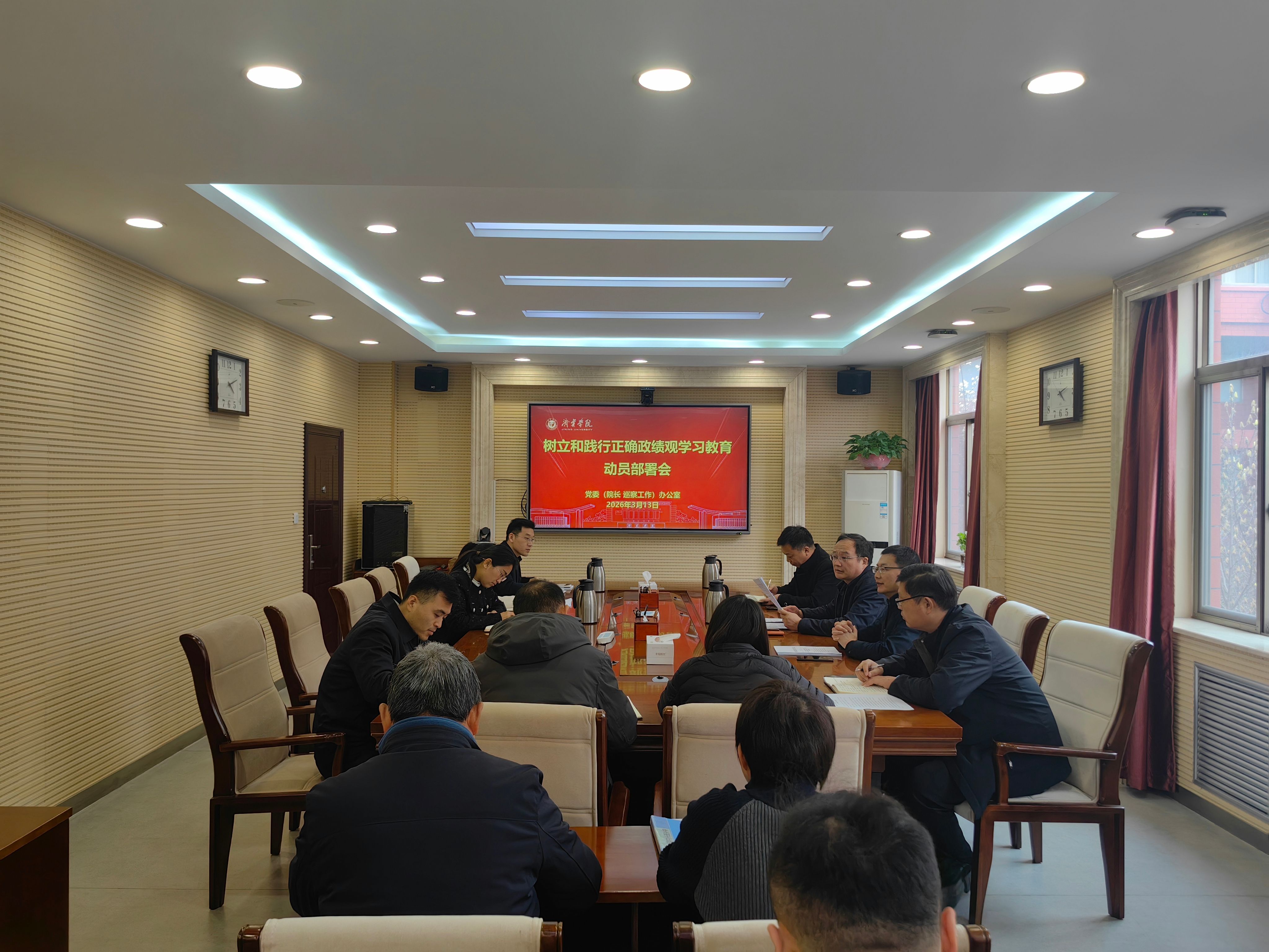 3月13日下午,党委办公室(院长办公室 巡察工作办公室)在行政楼A316会议室召开树立和践行正确政绩观学习教育动员部署会。会议由党委办公室(院长办公室 巡察工作办公室)党支部书记张永刚主持,办公室全体党员参加。